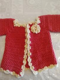 Giacca lunga bimba in lana 3..6 mesi all. Uncinetto