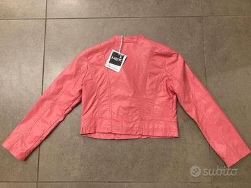 Chiodo in eco pelle, marca MEK, c/zip e tasche, colore rosa, TG 7 anni (cm 122).