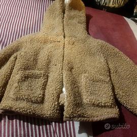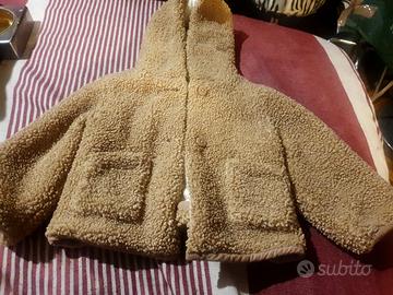 Giacca pellicciotta beige con cappuccio e interno bianco