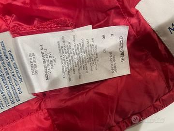 Vendo giacca rossa moncler 100 grammi eta 3 anni 98 cm in ottimo stato..