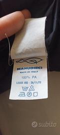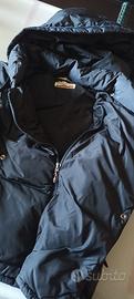 Piumino Manudieci blu scuro, taglia 4 anni, piuma d'oca. Con cappuccio removibile (manca il bordo di pelo) ma per il resto è perfetto.