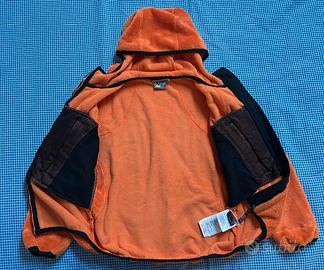 Giacca con cappuccio di Salewa, linea Alpine Adventure. Morbida e caldissima. Taglia 5-6 anni, 116 cm. n. 4 tasche verticali, di cui 2 sulle maniche. Bellissimo colore arancione.