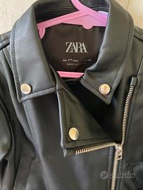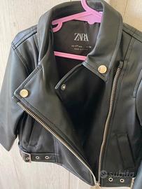 Giacca in similpelle nera per bambina, modello biker. Taglia 1 anno e mezzo (86cm) - Chiusura con zip. - Tasche laterali. - Cintura con fibbia sul fondo.