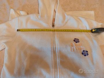 giacca sintetica panna per bambine con cappuccio, zip e tasche