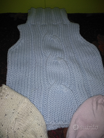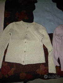 Giacchine varie in lana tenute bene , taglia 7/8/9 anni vendo.Una colore crema con voulant davanti della Benetton,una color rosa sempre della Benetton,una color crema con pailettes della Idexe con bottoni dorati e un gilet azzurro con collo alto a4/5 euro l 'una.