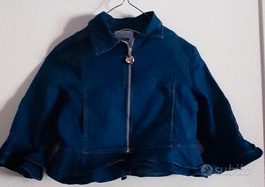 Giacca in denim per bambina firmata Moschino tg 98/104 - Applicazioni a forma di cuore sulle maniche. - Maniche a campana con volant. - Tessuto denim resistente.