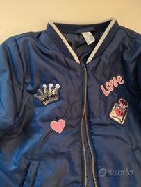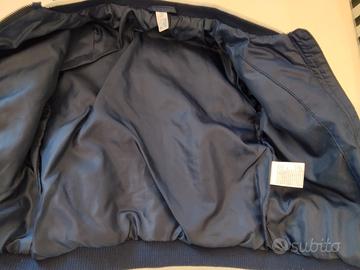Giacchino bomberino leggero - colore blu con scritte e applicazioni, aperto davanti con comoda cerniera e comode tasche, morbida costina rigata per collo, fondo e polsi. Foderato, marchio Idexe, mesi 36.--Usato ma in ottimo stato