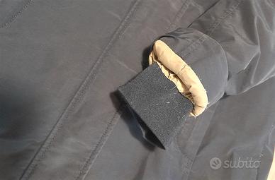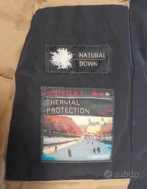 Giacca Canadiens, colore blu, taglia 12 anni. Cappuccio e pelo rimovibile, leggermente sfiancata. Tasche con zip e maniche con polsini in tessuto antivento. Molto calda, imbottitura 70% piuma, 30% penne. Pagato euro 140.