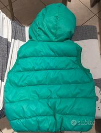 Gilet per bambino, di un vivace colore verde e con cappuccio.
