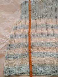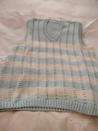 gilet bimbo celeste e bianco, fatto a mano, senza maniche in cotone usato due volte.