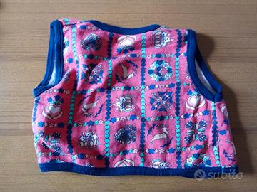 Vendo un gilet mezza stagione per bambino, dimensioni da spalla a spalla 30 cm, lungo 32 cm. Marca Bembo. Ottime condizioni, ma l'interno ha leggeri aloni gialli (ultima foto).