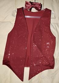 Gilet rosso brillante e papillon da utilizzare per saggi danza o ginnastica per bambini 8-10 anni, usato in ottime condizioni.