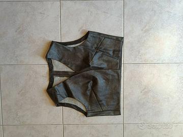 Smanicato/gilet nero in ecopelle effetto martellato, ideale per costumi di Carnevale. Linea semplice, senza chiusura, facile da indossare sopra maglie o camicie.