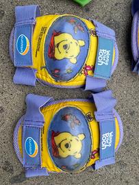 Ginocchiere (2 coppie, di 2 misure) e guantini per bimbo/a, adatti per proteggere ginocchia e manine in occasione di pattinaggio/ bici/ skateboard e altro.
