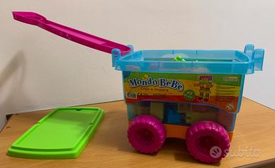 Gioco delle costruzioni, in contenitore con ruote che si può trascinare. Nuovissimo