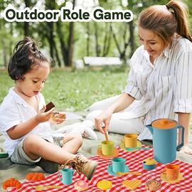 【Gioco di Ruolo】I bambini possono fingere di fare un picnic all'aperto con il set da picnic per sviluppare l'immaginazione e le capacità sociali ed espressive. Il servizio da tè giocattolo è realizzato in plastica di alta qualità, spessa e resistent