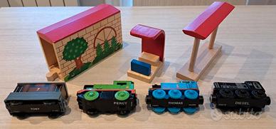 Compatibili con i set Brio - Ikea - Lidl Set Chuggington composto da: - 3 locomotive (Thoamas - Diesel - Percy) - 1 vagone (Toby) - 1 Galleria - 2 pensiline Come da foto Disponibile alla consegna a mano in zona.