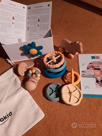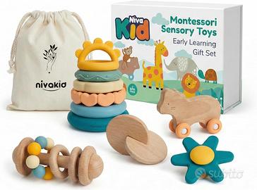 Favorisce esplorazione autonoma, curiosità e apprendimento attraverso il gioco. Ogni giocattolo stimola presa, impilamento, rotolamento e coordinazione senza sovrastimolazione.
