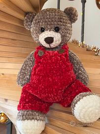 Vendo orsetto (cm 30circa) realizzato interamente ad uncinetto con filato Tre Sfere. Completo di salopette e sistema di sicurezza bimbi per gli occhi