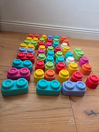 Giocattolo composto da 35 cubi singoli e 12 cubi doppi per costruzioni