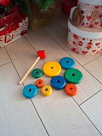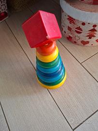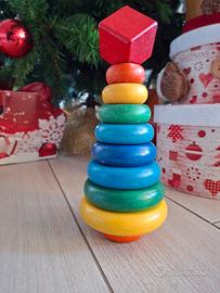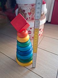 Giocattolo impilabile – 8 anelli colorati oltre a un cubo all'apice Gioco educativo in legno, pensato per stimolare la coordinazione occhio-mano, la motricità fine e il riconoscimento dei colori. Composto da 8 anelli e 1 cubo colorati facili da afferrare, scuotere e impilare, più un cubo finale. Nota: il primo anello (quello più grande) è mancante, ma il giocattolo è perfettamente utilizzabile e mantiene la sua funzione educativa. Il prezzo tiene conto di questa piccola mancanza. Usato, ma in buone condizioni come da foto. Pezzi come da foto. ✨ Perfetto per momenti di gioco e scoperta – Enjoy learning, Enjoy playing, Enjoy colors! ✨ Un piccolo classico che porta divertimento e crescita, pronto per essere amato ancora #Solaro, Garbagnate Milanese, Caronno pertusella, Saronno, Milano Cadorna, Bollate, Lainate, Arese, Limbiate