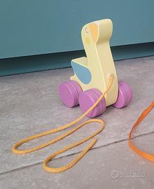 Oca in legno di dimensioni circa 10 cm con laccetto da tirare. Usato (dalle foto si evincono le piccole imperfezioni del legno). Marca: Sevi