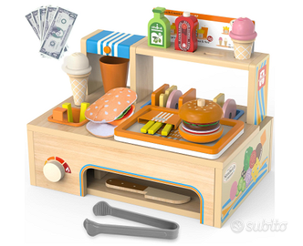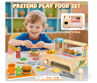 Giocattolo in legno sandwich shop , 56 accessori, chiudibile ,negozi , Montessori Vendo Giocattolo in legno sandwich shop , 56 accessori, chiudibile ,negozi , Montessori . Nuovo con scatola e accessori. Sandwich shop in legno massello di alta qualità, levigato e dipinto con colori ad acqua atossici e sicuri . Il set comprende 56 accessori tutti in legno tra cui hamburger, Sandwich, patatine fritte , gelati , soldi finti , vari box , topping per hamburger , verdure etc . Massimo divertimento, permette ai piu piccoli di creare varie composizioni tra hamburger, Sandwich, con vari condimenti . Gioco creativo metodo Montessori, pieghevole e chiudibile dove all'interno si può riporre tutto per limitare lo spazio quando non viene utilizzato. Gioco educativo , che stimola la creatività, le abilità sociali , la coordinazione , imparare cibi e colori in maniera divertente e sicura . Misura 30 cm per 22 cm per 28 cm. Set Completo di 56 Pezzi di Cibo Giocattolo】 Il nostro banco del sandwich in legno per giochi di finzione include tantissimi pezzi per permettere ai bambini di creare i loro panini preferiti e gestire il proprio negozio. Include un banco pieghevole, hamburger, panini, gelati, patatine fritte, verdure, soldi giocattolo, coltelli di legno, piatti e condimenti per un divertimento creativo senza fine. 【Pieghevole e Facile da Riporre】 Il set di cibo giocattolo per la cucina dei bambini comprende un banco per sandwich robusto e pieghevole con spazio di stoccaggio integrato. Dopo il gioco, si piega facilmente, tutti i pezzi possono essere riposti all'interno del banco, offrendo una soluzione salvaspazio per stanze ordinate e comoda per viaggi o per il ripostiglio in spazi ridotti. 【Materiale Sicuro e Durevole in Legno Massello】 Realizzato in legno massello di alta qualità e verniciato con pitture a base d'acqua non tossiche e sicure per i bambini. Ogni pezzo è accuratamente levigato per una finitura liscia, senza bordi taglienti o schegge, totalmente sicuro per le piccol