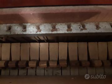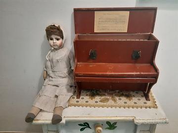Pianoforte in legno tasti n.15 Samba anni 40/50.Frontalmente sopra la tastiera due candelabri con due candeline.Nella parte interna del coperchio uno spartito di una musica "The Wedding Samba".Largo cm.36, alto 30,profondo 20. Fabbricato artigianalmente. SUONA !!!!!!