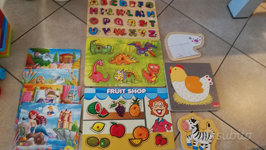 Vendo giochi usati ma in ottimo stato: costruzioni mega blocks, costruzioni clementoni morbidi, puzzle in legno,puzzle fiabe in cartone, torre fisher price,tamburo chicco.