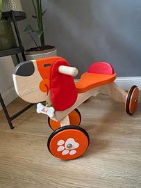 A causa inutilizo vendo Cavalcabile in legno a forma di cane, ideale per i primi passi dei bambini. Un giocattolo divertente e stimolante. Marchio Sevi. - Design a forma di cane con dettagli colorati. - Manubrio in legno per una presa sicura. - Seduta comoda e colorata. - Ruote Rosso e arancioni con impronta di zampa bianca.