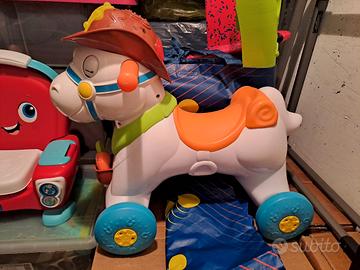 vendo in blocco cavallino con rotelle e poltroncina fisher price come da foto corredate, adatte per bambini > 12mesi e complete di alcune funzioni vocali e canzoncine. entrambe hanno già le batterie dentro.