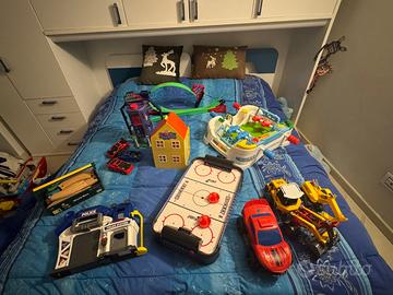 Regalo giochi vari …. Per asilo casa famiglia ospedali o chi ne ha bisogno…. Giochi da bambino vari auto camion peluche giochi in scatola bici ecc tutto in ottime condizioni …. Regalo a chi ne ha bisogno