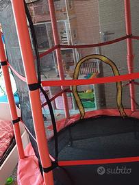 Bellissimo salterello da poter mettere fuori in giardino o in una cameretta per fare giocare i bambini,utilizzato poche volte.in acciaio