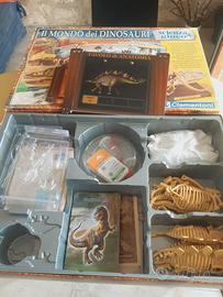 Puzzle della Clementoni Serie Collection, nessun pezzo mancante. Gioco "Il mondo dei Dinosauri" con scheletri da assemblare e gesso per calco e schede illustrate.
