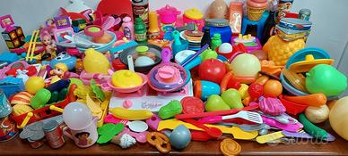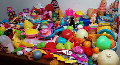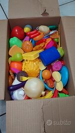 Giochi da cucina scatolone pieno, cibo, pentole, piatti ecc,,, Giochi bambini ottime condizioni.