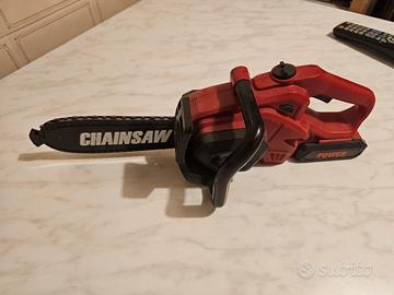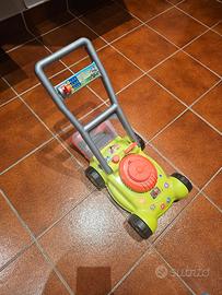 Giochi da giardiniere per bambino composti da una carriola, un tagliaerba, un soffiatore che soffia davvero e una motosega che funziona da vero (si muove la lama e fa i suoni reali). Condizioni ottime.