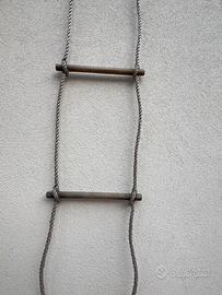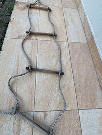 Scala in legno a 4 livelli con ganci in metallo. Resistente e certificata. Ottima per il divertimento dei ragazzi. Disponibili, in aggiunta, fissaggi per travi in legno.