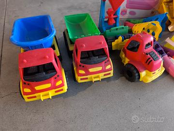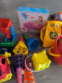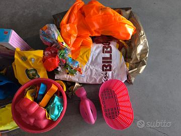 Regalo giochi da spiaggia usati. Pacchetto completo come foto. 2 Camioncini, 1 Ruspa, 1 Mulino, 4 Racchettine spara palline, 1 Piscinetta, 2 Secchielli, 1 Innaffiatoio, 1 Cestino, 2 Materassini Gonfiabili, Stampini Sabbia vari. Mi dispiace buttarli. Regalo