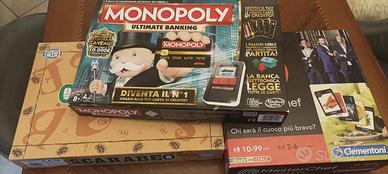 Vendo tre giochi da tavolo: Monopoly ultimate banking, Scarabeo ed il gioco da tavolo di Masterchef Italia. Li vendo tutti e tre insieme per far spazio, principalmente.