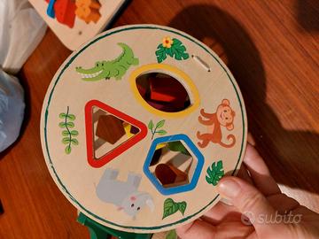 giochi di legno sia incastra forme che musicale per lo xilofono però purtroppo non ho più la bacchetta per suonare e la tartaruga su un punto è rovita( foto allegata)
