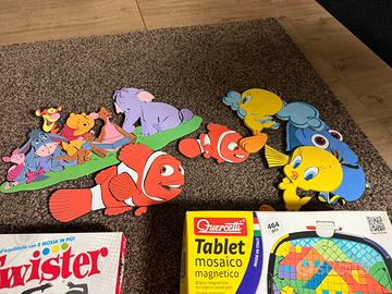 Due giochi di società: tablet, mosaico e Twister più alcuni effigie per allestire la stanza di un bambino in gommapiuma spessi 1 cm circa