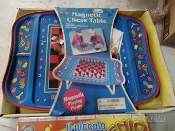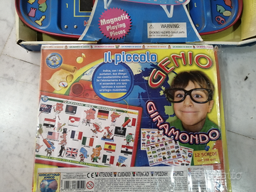 Fantastico tris di giochi di società per bambini formati dal gioco dei dama tra l'altro con pezzi magnetici si può giocare in macchina seduti dietro perché i pezzi non cadono dotati di un calamita straordinario!!!! completi di tutti gli elementi che caratterizzano questo gioco poi il gioco del piccolo genio per constatare la conoscenza delle capitali europee, poi un gioco che comprende 8 giochi come la dama, gli scacchi, la tria, il backgammon e altri bellissimi giochi per far giocare i bambini a un gioco che sviluppa la sua intelligenza, carattere ma per lo più per giocare insieme fare gruppo evitando di stare sui telefonini o sui social network. A dimenticavo il prezzo un dettaglio 5 cadauno se comprate tutte e tre le cose 10 euro un calcio alla crisi economica