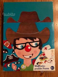 Gioco MAGNETO FACE UP, gioco magnetico per comporre volti e espressioni facciali, editore Imaginarium: gioco di abbinamento per creare volti con 60 pezzi calamitati e 12 divertenti modelli. Attacca i pezzi ( occhi, bocche, baffi, capelli, fiocchi) sulle facce in bianco all'interno del coperchio.
