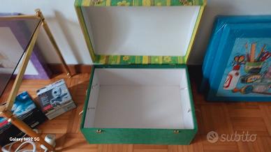 Bellissime scatole con motivi colorati, Karaoke orologio con angelo e varie, tutti nuovi ottima condizione. Un bel gancio bianco porta tendina da mettere sopra la culla.