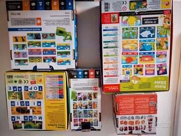 Vendo n. 05 giochi educativi da tavolo per bimbi, età 2/5 anni, con scatole originali, come da foto.