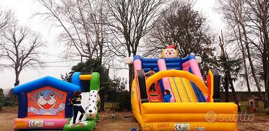 vendo 2 gonfiabili - gonfiabile maxi " CLOWN " L 6m × L 6m x H 4m - gonfiabile midi " CAGNOLINO " L 3,5m x L 3,5m x H 2.5m usati , con segni di usura ma perfettamente utilizzabili , entrambi con motore per il gonfiaggio