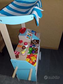 carrello del gelato, della frutta e della verdura, completo di bilancia, cassa, e una miriade di prodotti (frutta,verdura, gelati, etc).