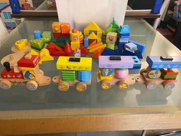 Vendo in blocco bellissimo set di giochi in legno per bambini, ideale per stimolare creatività, manualità e fantasia. Il lotto comprende: