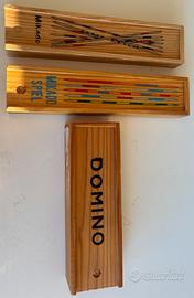 Set tre giochi in legno per bambini, nuovi, nella confezione originale corredati di istruzioni.