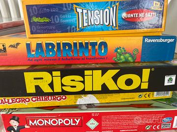 Vendo giochi in scatola, completi e praticamente nuovi. risiko mai utilizzato. Vendo a 10€ l’uno, se presi in blocco Vendo a 40.